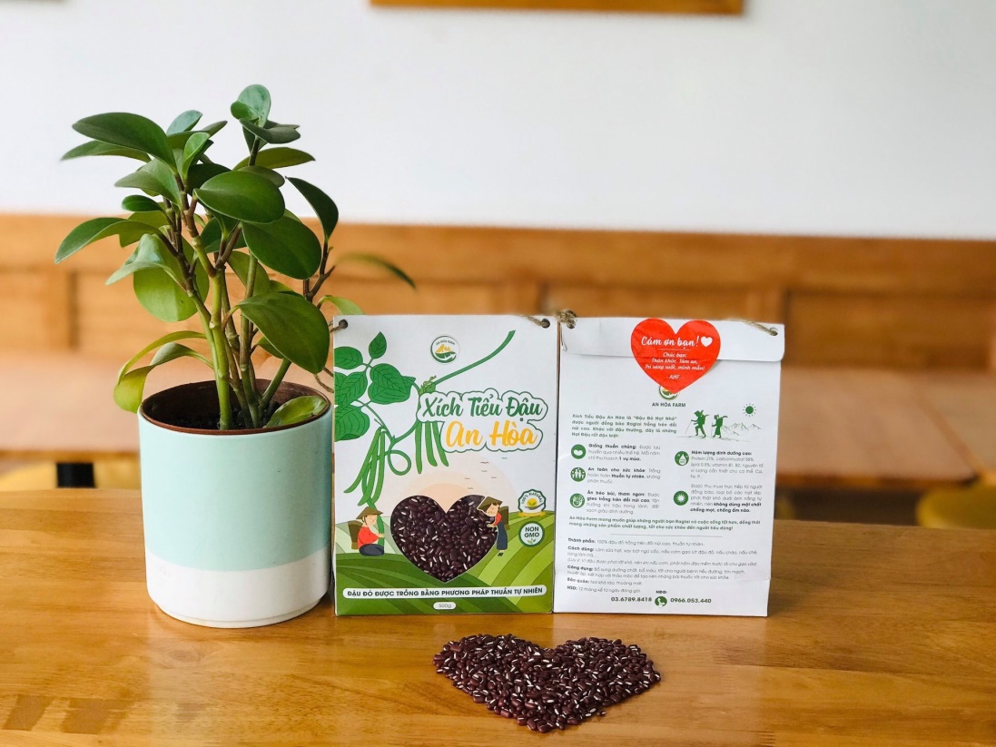 Sản phẩm “Xích tiểu đậu An Hoà” là sản phẩm hội tụ tinh hoa cũng như tâm sức của những người con miền núi. Đồng bào nơi đây, trồng và chăm sóc cây đậu đỏ tỉ mỉ cho tới ngày thu hoạch. Từng hạt đậu đỏ được thu hái, sau đó được chọn lọc kỹ lưỡng bằng tay, loại bỏ hầu hết các hạt xấu, lép, sâu,... chỉ chọn ra các hạt tròn đều, chắc, đẹp. Sau đó được phơi khô trước khi đóng từng gói nhỏ để đưa tới tay người tiêu dùng. Ước mong mọi người cảm nhận được cái “Tâm” của người làm và nâng cao sức khỏe từ việc dùng các sản phẩm sạch, rõ nguồn gốc, với đầ lòng yêu thương và sự biết ơn!